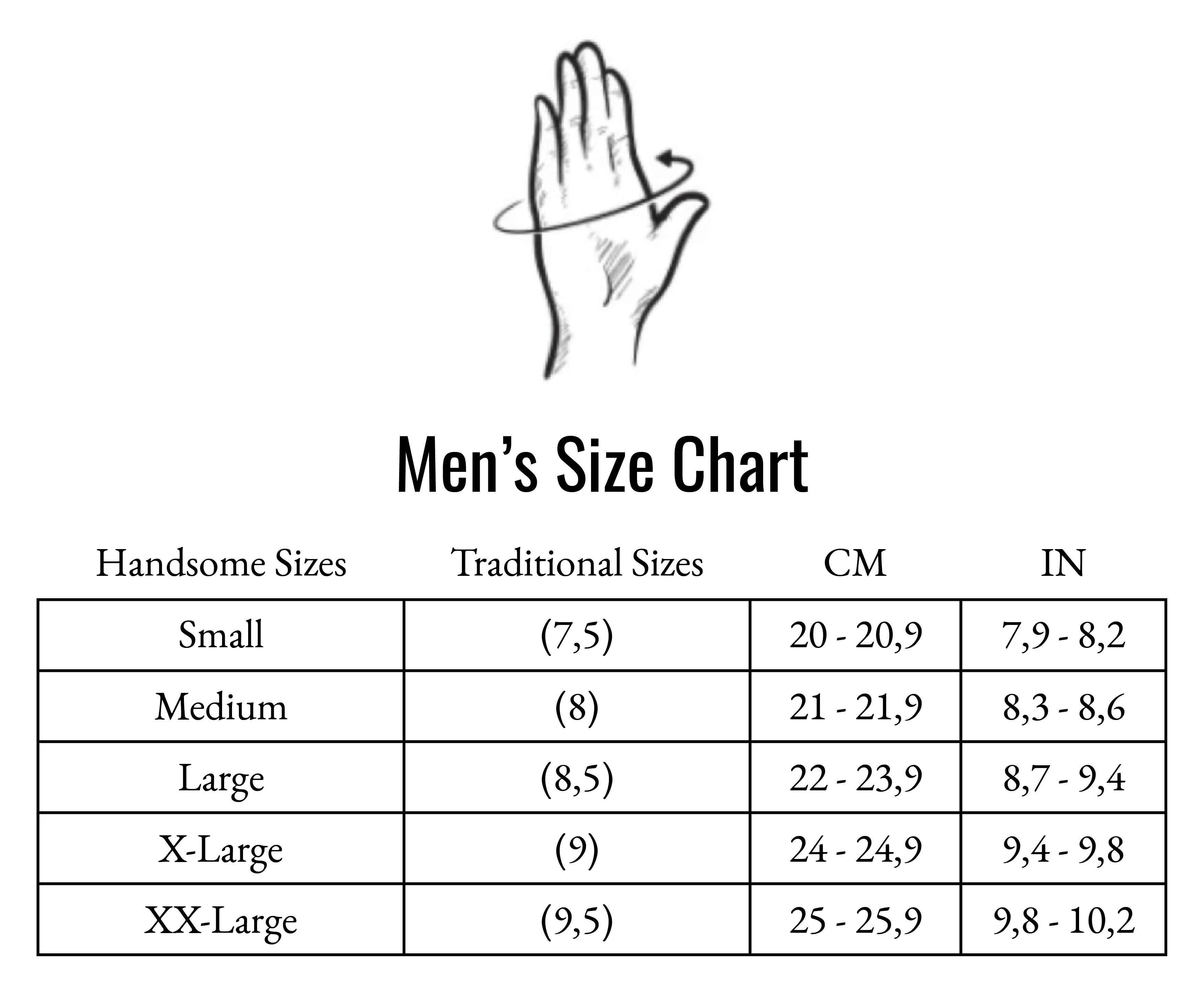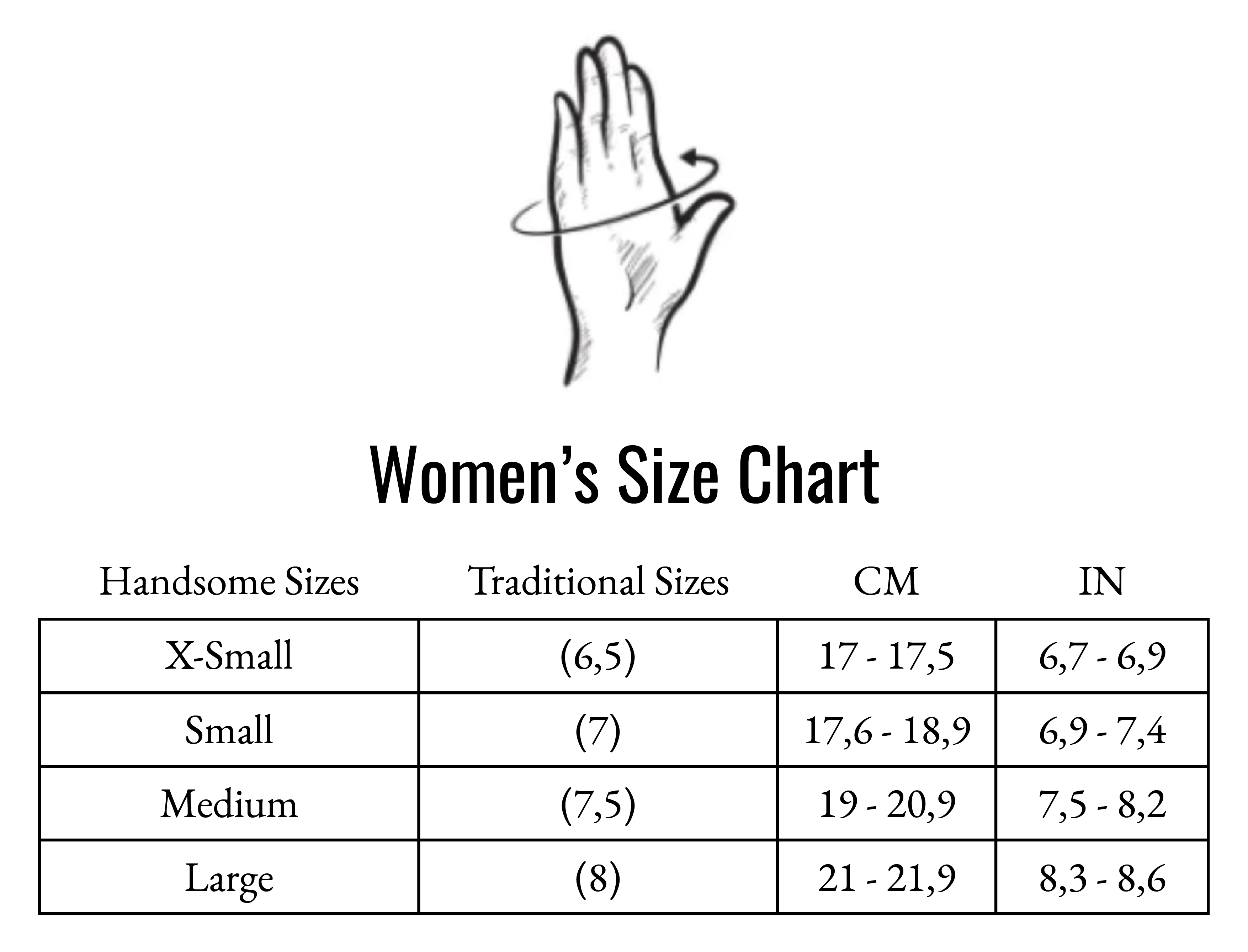 If you are between two sizes, we recommend that you order the smaller size. This is because your gloves will stretch over time. However, if you regularly wear large rings, or prefer gloves with a looser fit, we recommend that you choose a larger size.