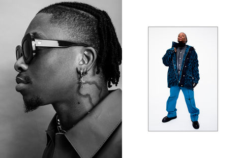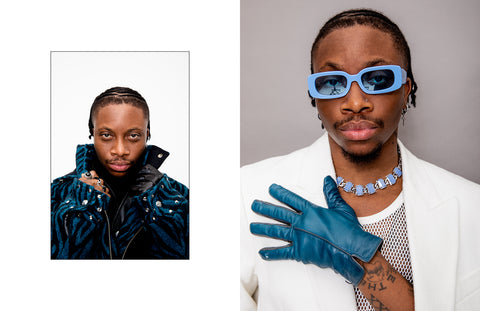 October 04, 2023OXLADE X HANDSOME STOCKHOLM Nigerian music artist Oxlade wearing Handsome Stockholm Statement petrol for an interview in Schön!Magazine. Read the article here.Styled by Anastasia Busch